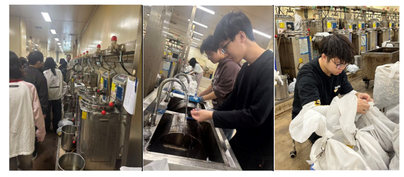 本次活动分为参观学习、劳动实践、讨论总结三个部分。首先,煎药中心韩越主任为学生讲授中药煎药知识,带领同学们参观了智能煎药设备及煎药中心信息管理系统。韩主任强调了煎药是中医药的重要组成部分,介绍了多种常用方剂的煎制方法,详细讲解了信息化和自动化技术对煎药流程监管、质量控制、患者体验等方面的积极作用。在劳动实践环节,同学们在带教老师的指导下参与完成药材浸泡、药液打包、设备清洗等工作,学生们挥汗如雨依然认真完成工作,彰显了当代大学生热爱劳动、吃苦耐劳的良好品格。