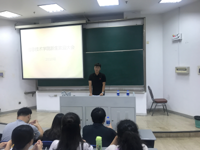 9月6日上午9时,我院在B7-102教室举行2018级新生欢迎大会,信息技术学院2018级169位新生准时到场,学院胡孔法院长、党总支蔡爱华书记、胡云副院长、鲍剑洋副院长,2018级学业指导老师陆志平、宋懿花、龚庆悦,学工办主任沈静,分团委书记诸葛建,辅导员刘小平等出席大会,会议由沈静老师主持。